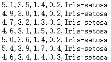 这个iris.data就是我们需要的数据了。点击进去,会在网页中显示数据。数据长这个样子。