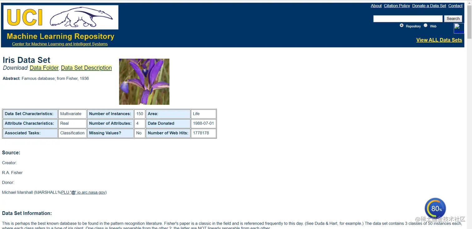 首先是数据集,采用UCI的鸢尾花数据集,网址链接:点击打开链接。