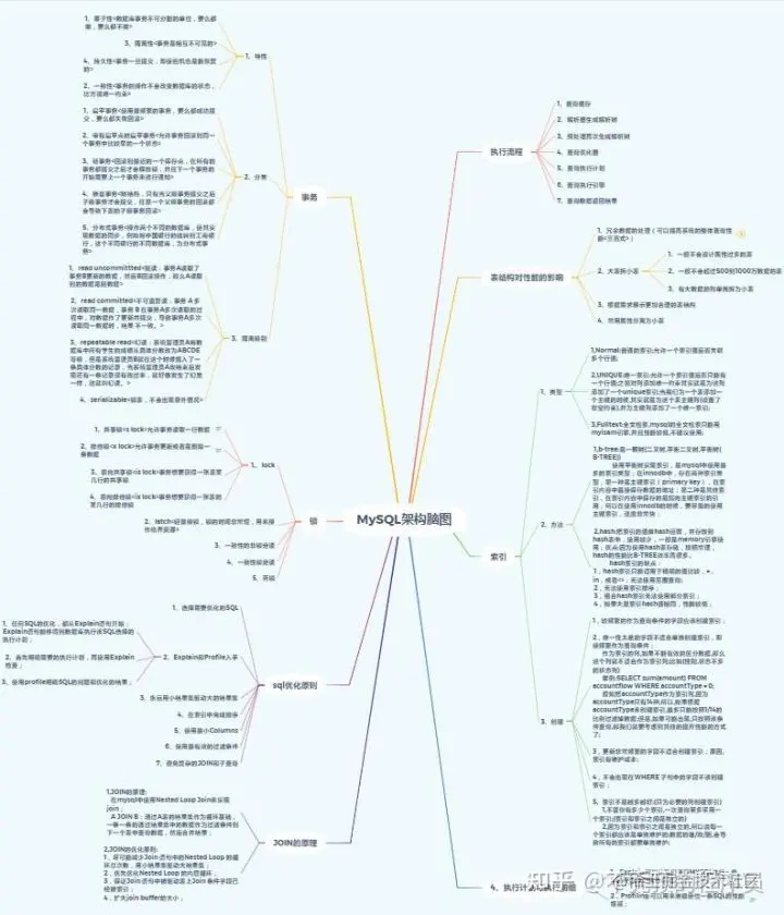 先梳理一遍MySQL知识,如下图(手绘版xmind架构脑图,原件无法上传,截图展现)