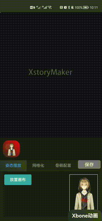 用户在手机端即可完成PNG美术素材的切图组合及动画制作,Xbone 2D动画引擎提供了2D动画在手机端制作的可能与工作流程。