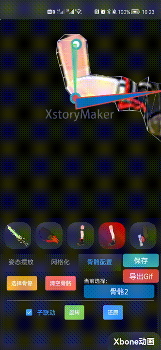 市面上从Flash年代开始,就一直有着2D骨骼动画的解决方案。主要思路是通过用户交互给需要变形的图像绑定一个抽象的“骨骼”,通过移动骨骼将图片变形。听起来好像不是很复杂,但目前来说并没有任何一个具体的图像编辑软件将该功能彻底开源。所以我在参加HarmonyOS应用创新大赛的时候,在XstoryMaker中加入了Xbone 2D骨骼动画的功能。