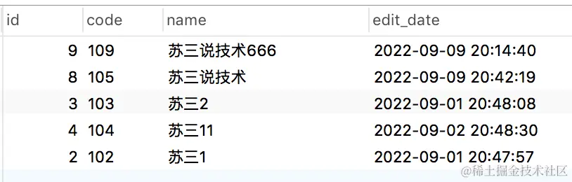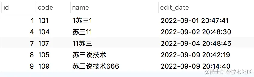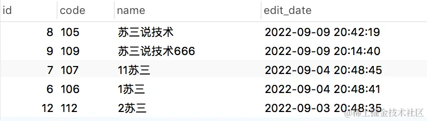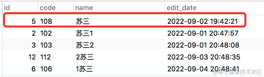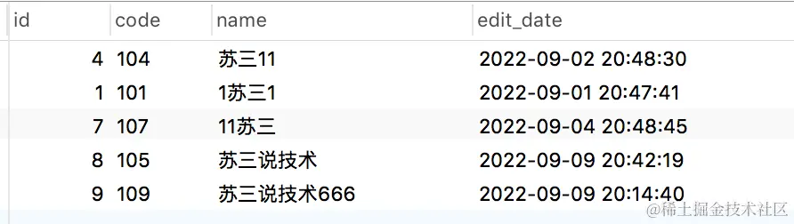 如果查出了一条数据,则把它放在返回结果集合中的第一位置。接下来,使用like '%苏三'进行模糊查询的时候,再加上条件 name <> '苏三'。将查出的结果,从第二个位置往后放。