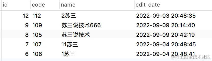 我们所期待的:苏三,终于排在第一个了。同时由于该sql做了分页的,即使name字段在查询时丢失了索引,执行效率也不会太低。