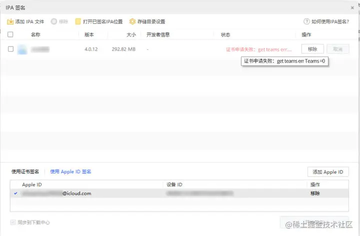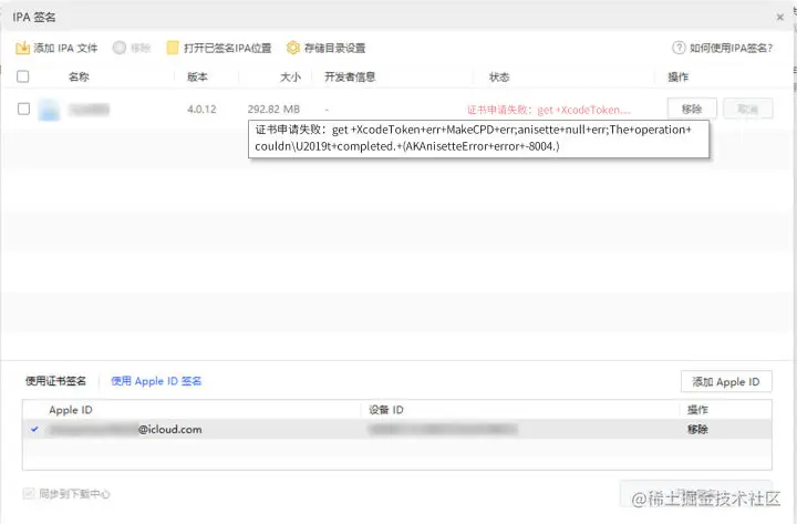 使用 Apple ID 签名 IPA 文件也就是常说的“个人签”,很多小伙伴在使用Apple ID签名时,有时候会出现证书申请失败,或者签名失败,这类报错信息。