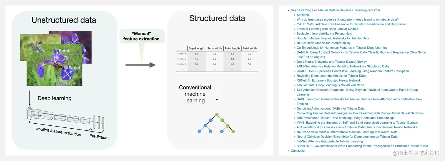 我们知道深度学习非常适合非结构化数据,深度学习有时被称为『表征学习』,因为它的优势在于学习特征提取的能力。大多数结构化(表格)数据集已经表示了(通常是手动)提取的特征,但许多研究人员最近试图为结构化数据集开发特殊用途的深度学习方法。这篇内容整理和更新了结构化数据上的深度学习研究和应用资源列表。