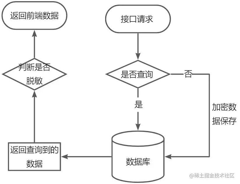 - 请求查询用户数据时,我们把数据库的数据解密,然后判断前端是否需要脱敏处理,将数据返回给前端即可