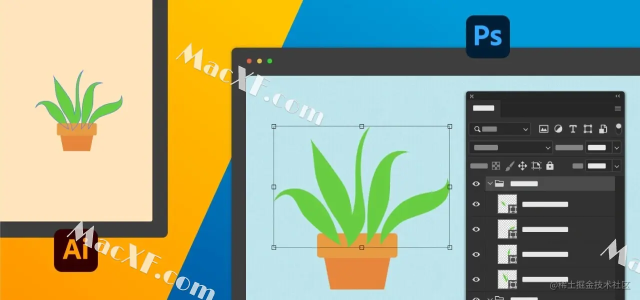 改进了您最喜爱的应用程序 Illustrator 与 Photoshop 之间的互操作性,允许您在享有交互操作的同时,轻松地将那些带有图层/矢量形状、路径和矢量蒙版的 Ai 文件引入 Photoshop,以便您可以继续编辑和处理这些文件。
