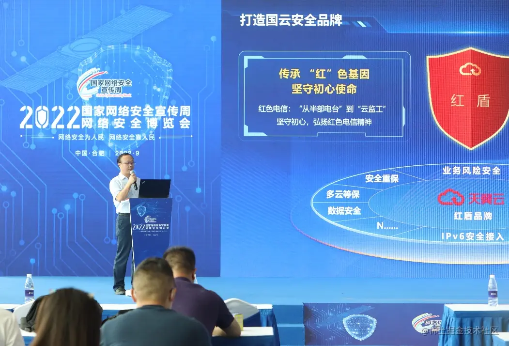 9月7日,2022年国家网络安全宣传周在安徽省合肥市举办。活动期间,中国电信天翼云举办了云原生安全产品“红盾”系列介绍会,会议以“红云天翼 安全普惠”为主题,详细介绍了“红盾”系列产品的主要功能及优势等。数字经济时代,伴随着云计算技术不断发展和深入应用,云上安全问题也日益凸显。天翼云科技有限公司网信安部副总经理朱良海表示,安全可信是国云的要求和本质特征,也是天翼云的核心竞争力。天翼云一直在思考和实践,从体系构建、技术创新、品牌打造、安全护航、生态共建五方面发力,铸牢国云安全,助力千行百业健康安全发展。