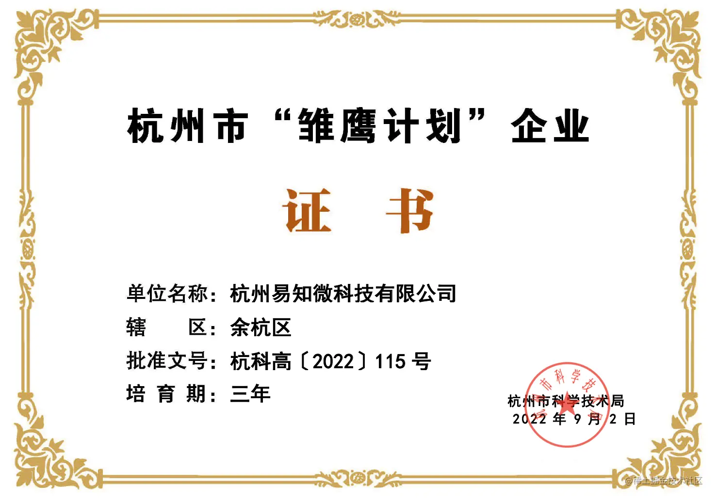 本次易知微获选为杭州市“雏鹰计划”企业,是政府部门对易知微技术实力和发展潜力的高度认可,也是推动易知微发展前进的动力。