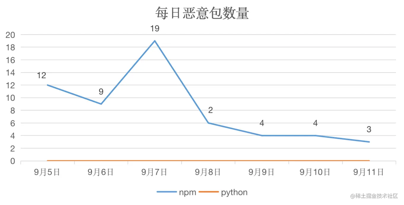 OSCS针对 NPM 仓库监测的恶意组件数量如下所示。