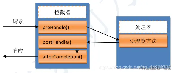 拦截器中方法与处理器方法的执行顺序如下图: