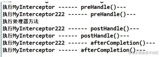多个拦截器中方法与处理器方法的执行顺序如下图: