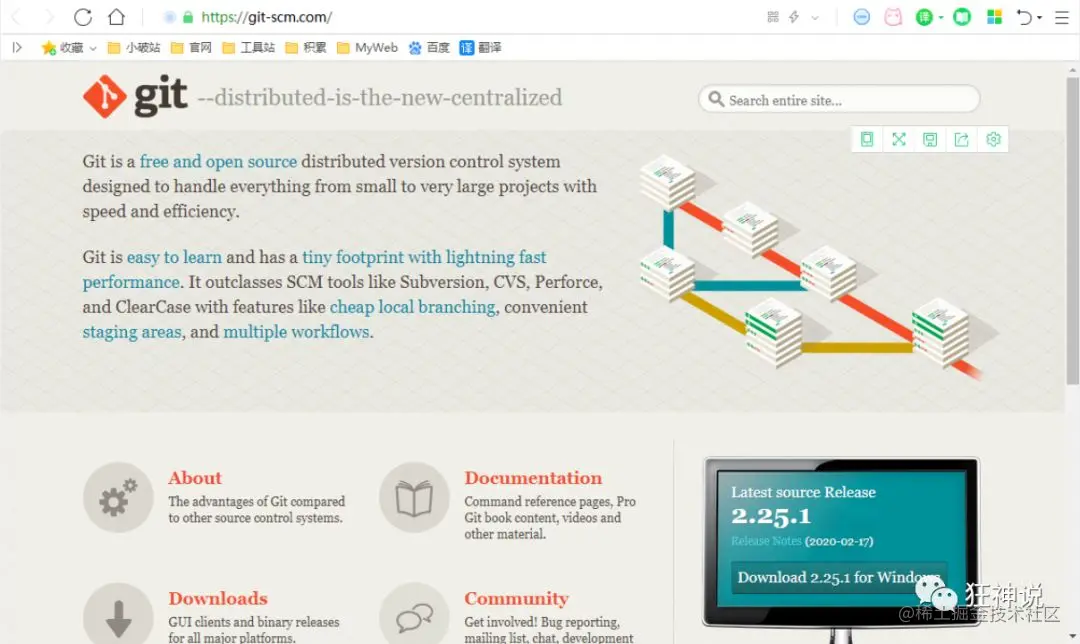 打开 [git官网] git-scm.com/,下载git对应操作系统的版本。