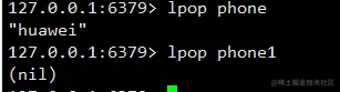 - LPOP key:移除并返回列表左侧的第一个元素,没有则返回nil