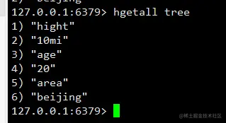 - HGETALL:获取一个hash类型的key中的所有的field和value