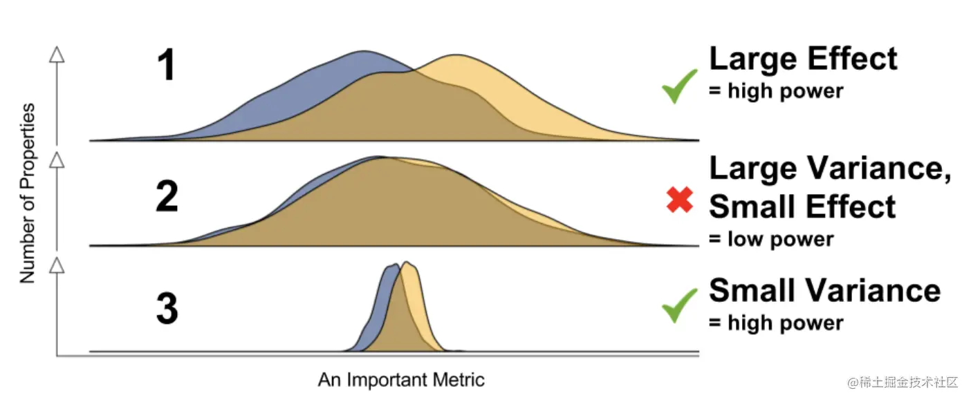 因此如果能合理的通过统计方法降低方差,就可能更快,更小成本的检测到微小的效果提升