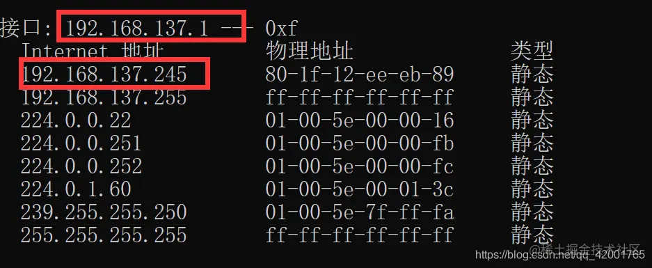 - 打开终端,输入arp -a,通过上面的地址找到nanopi的地址。有时候需要把板子断电再上电一会才会出现地址。
