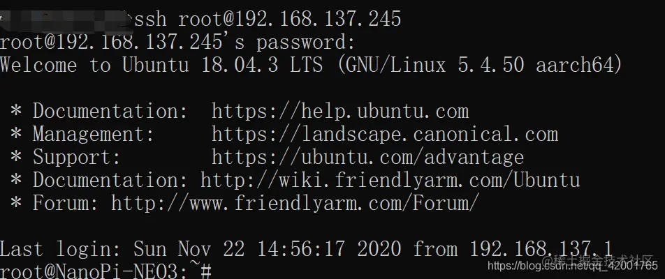 - 成功。另外nannopi 的root默认密码是fa