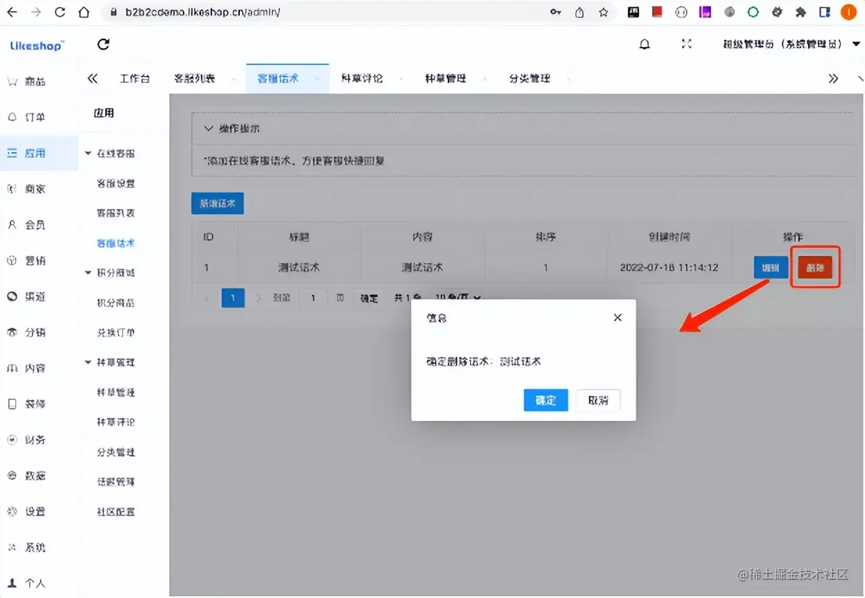 点击删除按钮,确认后即可删除话术。