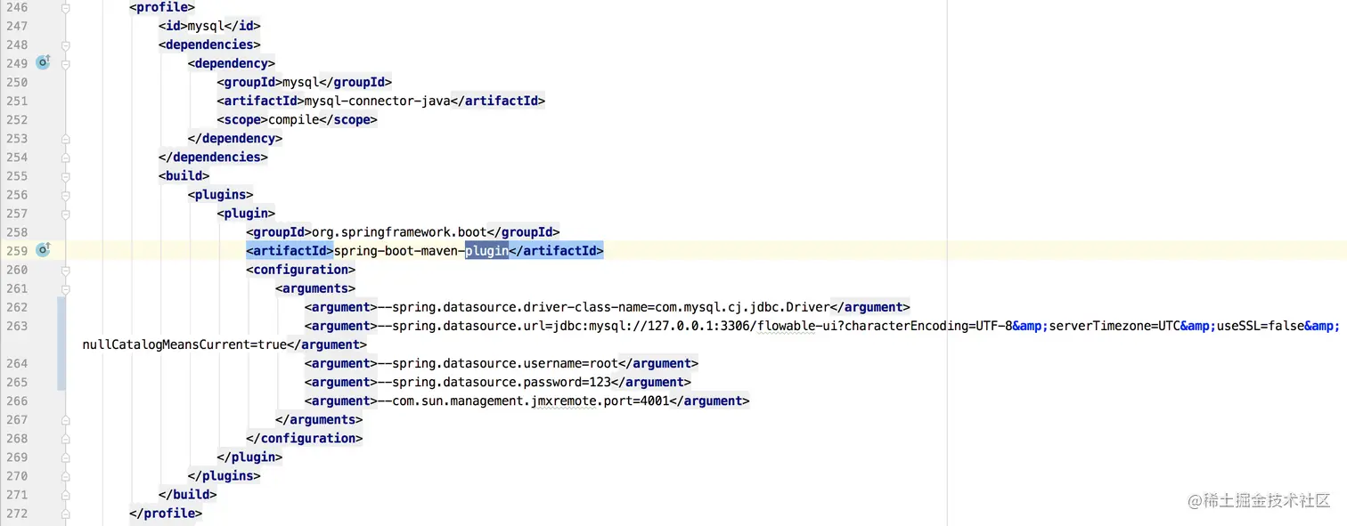 最后,再在 modules/flowable-ui/flowable-ui-app/pom.xml 文件中加入 MySQL 数据库驱动,如下: