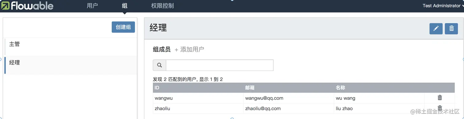 好了,现在我们在 flowable-ui 中,我们新建几个用户和组,如下: