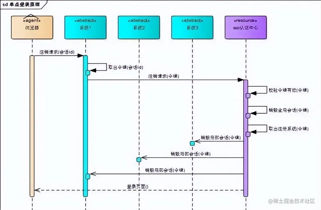 - 系统1根据用户与系统1建立的会话id拿到令牌,向sso认证中心发起注销请求