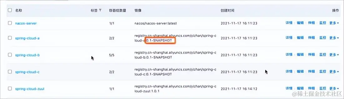 - 在容器服务控制台,发现 spring-cloud-a-gray 应用已经被删除,并且 spring-cloud-a 应用的镜像仍然是老版本。
