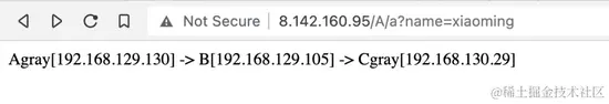 不带灰度 Header 进行调用,发现路由到 A 的正常节点。