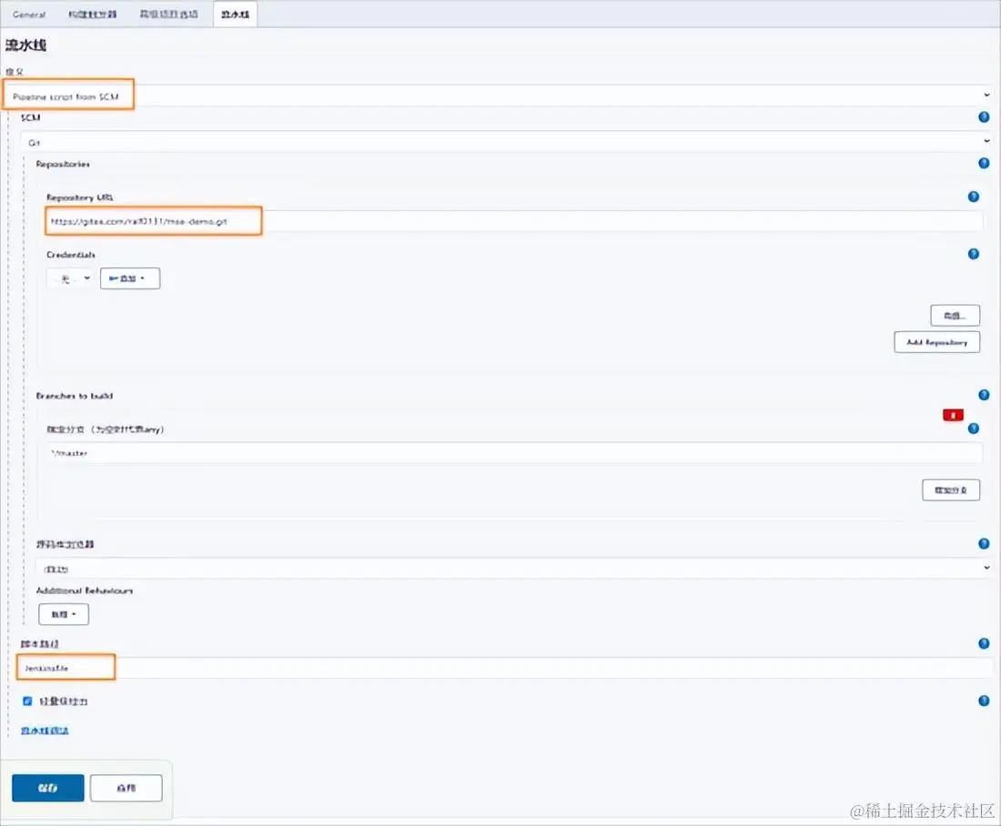 脚本路径:输入 Jenkinsfile。