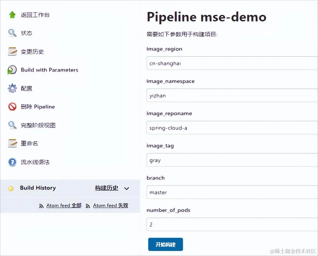 - 单击流水线的开始构建。