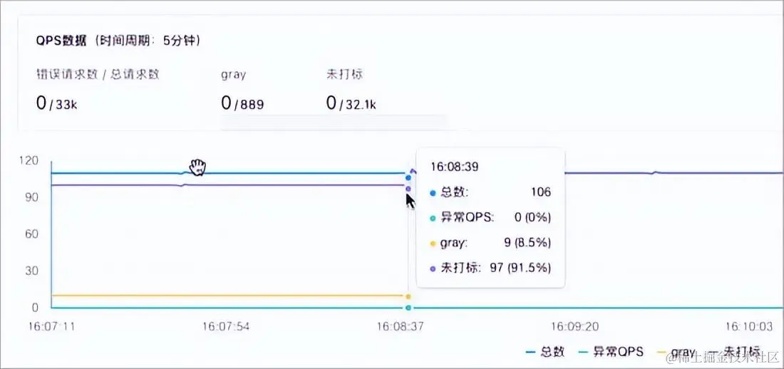 - 登录 MSE 治理中心控制台,在应用详情页面,可以看到灰度流量已经进入到灰度的 Pod 中。