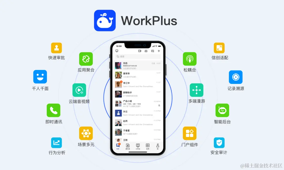 WorkPlus早在2012年开始就专注于移动数字化平台,甚至早于钉钉和企业微信。但与它们不同的是,WorkPlus立足于党政军/央国企/中大型企业在数字化转型中对强安全、强可控、强定制的需求和思考,为企业提供极致的安全能力和贴身的私有化部署方案。