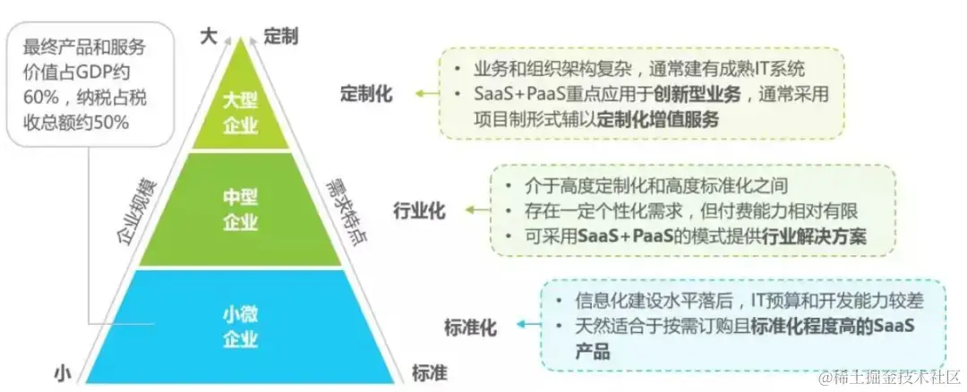 其次,一些大中型企业是有信息化的基础的,随着规模的扩大,集团化企业的各分支机构和总部之间协同应用场景程度加深,这也要求平台拥有可扩展的定制化能力,能够在现有信息化产品的基础上进行二次开发。而SaaS平台是一个成型的系统,只能满足标准化场景,虽然具备开放平台,但平台并不支持定制二开,不能让企业完全掌控。
