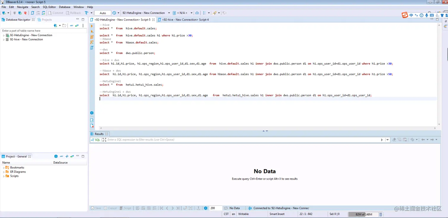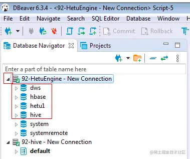 选择配置好的hive数据源92-HetuEngine - New Connection,右键选择SQL Editor