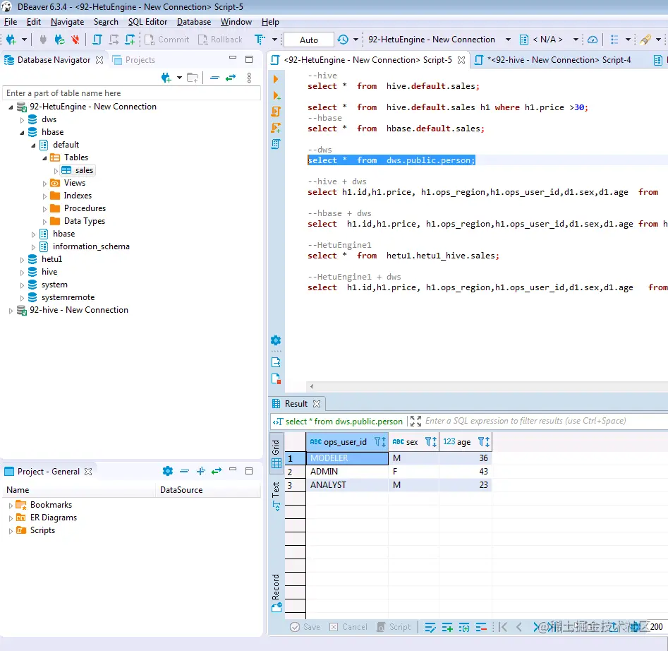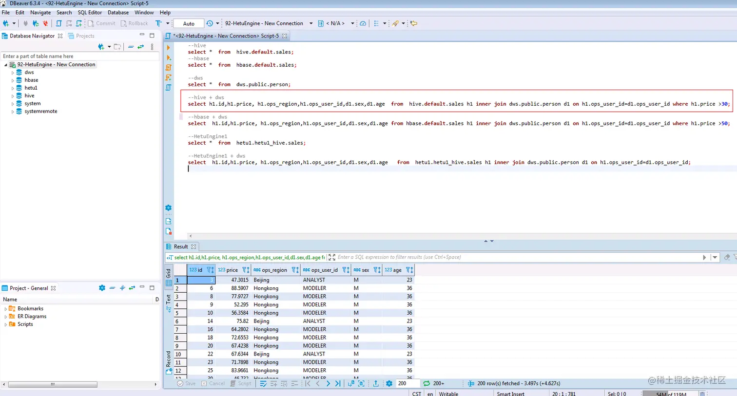 SELECT h1.id,h1.price, h1.ops_region,h1.ops_user_id,d1.sex,d1.age FROM hetu1.hetu1_hive.sales h1 INNER JOIN dws.public.person d1 ON h1.ops_user_id=d1.ops_user_id;