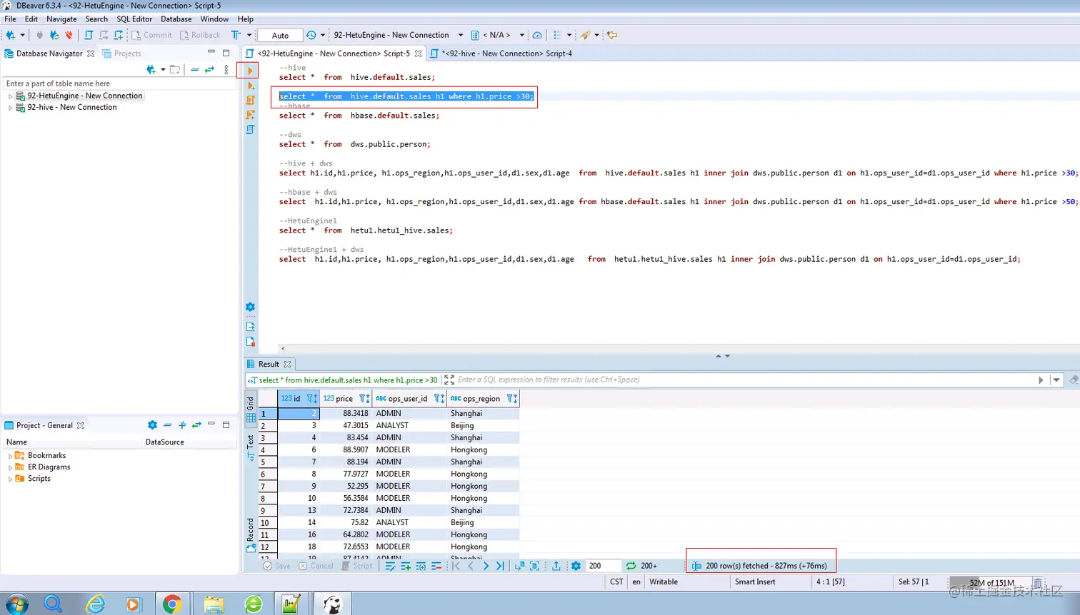 4.3. 体验MRS集群A的hive同DWS集群C跨仓分析查询