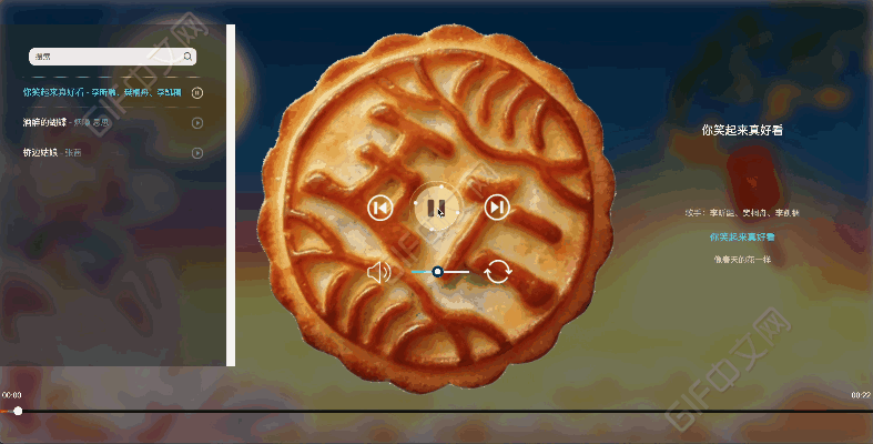 事情的经过是这样的,媳妇中秋发了一盒月饼,里面还有一个小蓝牙音响,她说如果这个音响是个月饼造型之类的是不是更能体现出中秋的气氛。于是我就想到了可以用代码给她实现一个啊,拿出了我仅有的一点点前端看家本领(我是搞后端的),浪费我三天假期,效果图如下,本来设想的挺好,可是由于本人能力有限,没有达到自己预想的目标,仅供娱乐!
