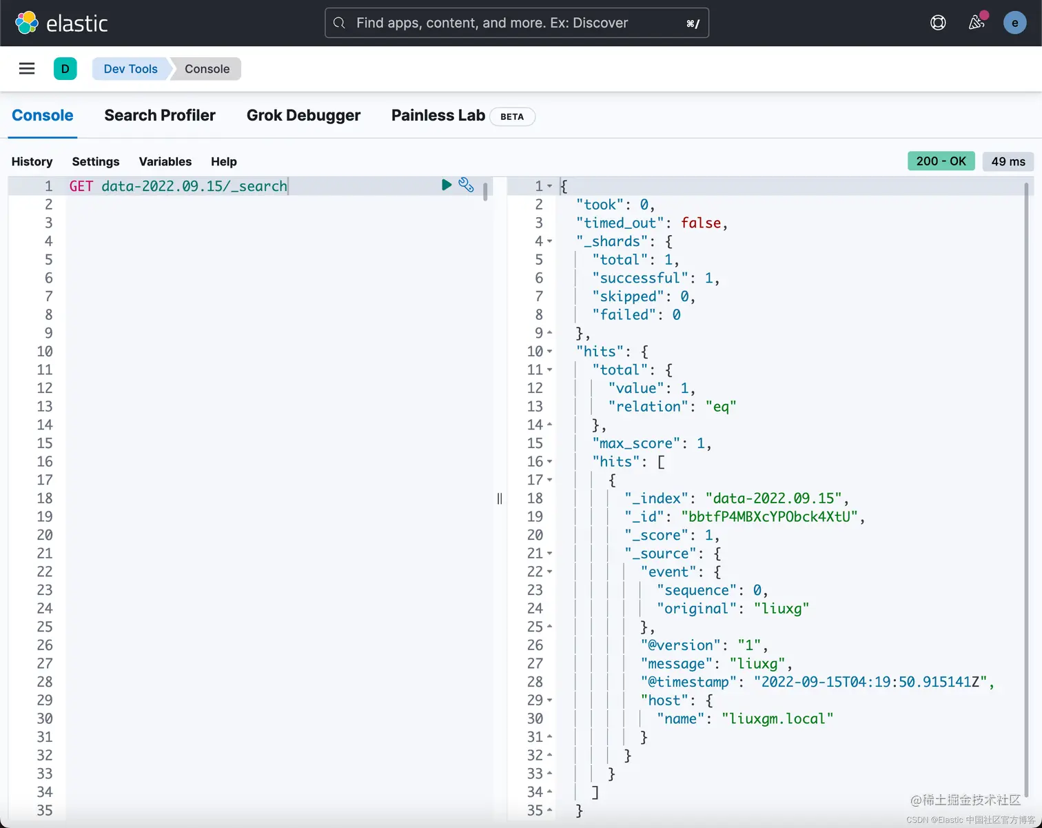 很显然,我们的数据已经写入到 Elasticsearch 中了。