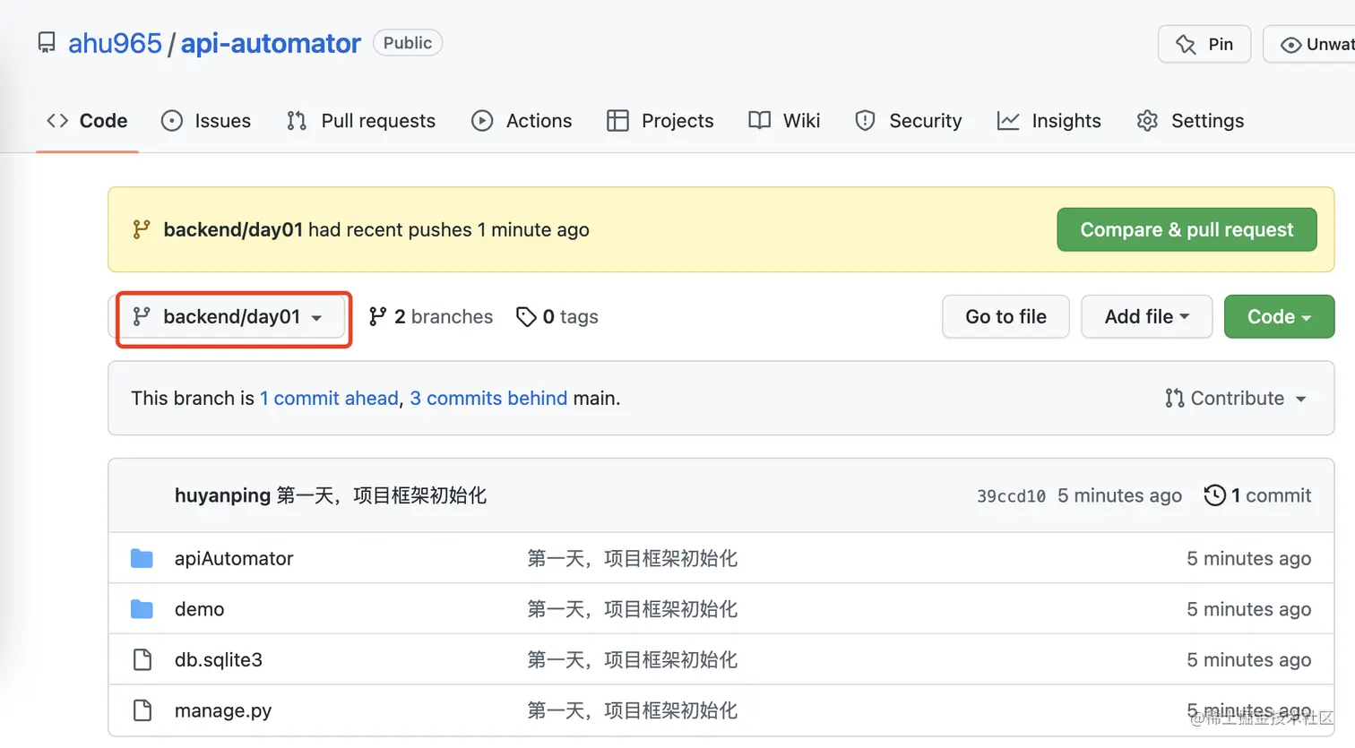 然后使用命令git branch -m backend/day01创建一个分支