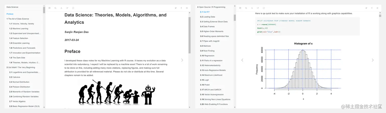 作者 Sanjiv Ranjan Das 是 Santa Clara 大学商学院金融与数据科学教授。这本书是作者为其课程《Machine Learning with R》开发整理的课堂笔记。包含以下章节: