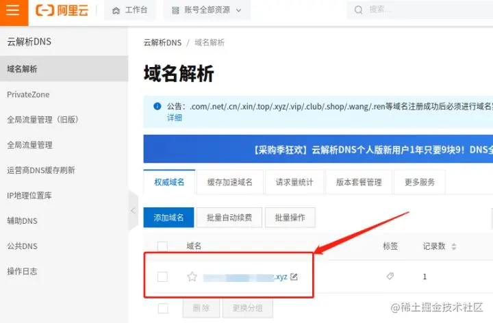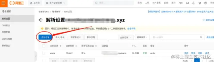 递交证书绑定申请后,我们转回阿里云工作台,找到云解析DNS按钮,对DNS进行解析。