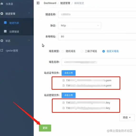 最后,我们回到Ubuntu上的cpolar客户端,再次打开数据隧道的编辑页面,将站点证书文件和站点密钥文件分别上传,再点击下方的“更新”,就能将证书应用于Ubuntu中建立的网站。我们就能通过更安全的https协议(即使用https为网页前缀),访问到本地的网站。