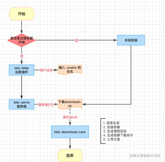 - kkb-serve:服务端,接收请求,接收后进行下载【download-sh】仓库并输入依赖,执行课程下载流程(github.com/Sympath/dow…