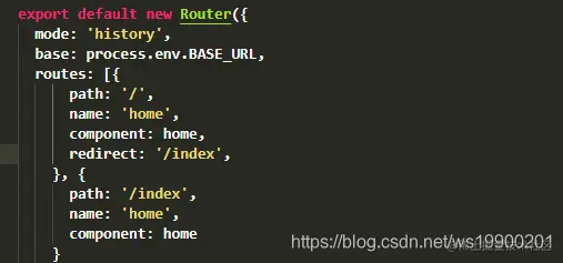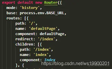 第一个对象里是配置路由path:’/'为项目的根目录,redirect重定向为渲染的路径redirect:'/index'(这里我是指向了第二个对象里的path),所以就要写第二个对象方便 redirect 找到它。