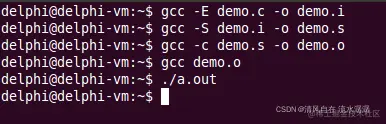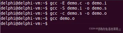 最后输入 gcc -c demo.s -o demo.o,如下: