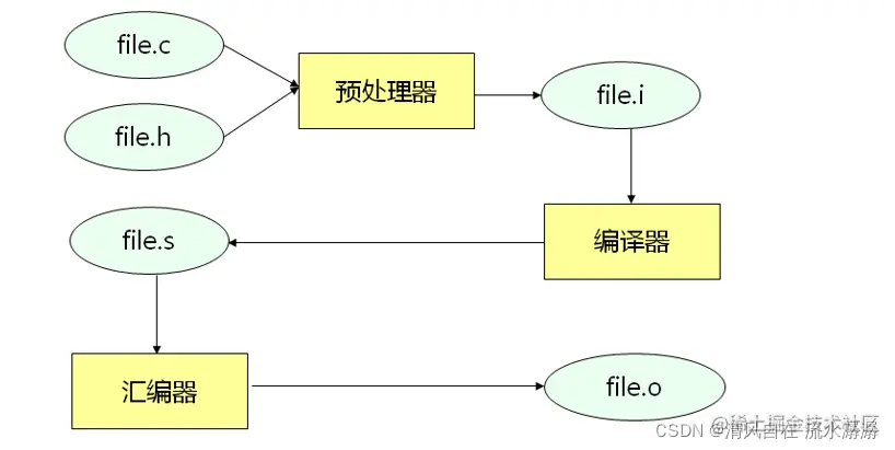 预处理指令示例:gcc -E file.c -o file.i