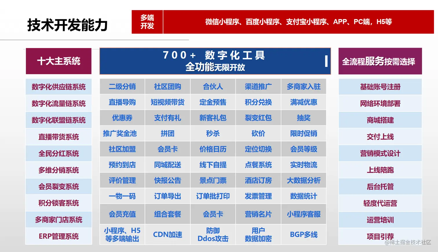 开发小程序有什么优势?对于用户来说,小程序不占内存,可以节省用户初期进入系统的时长;对于企业而言,小程序相较于APP用户端而言,拥有更低的开发成本。开利网络基于15年技术研发经验,蚓链营销系统拥有微信小程序、百度小程序、支付宝小程序、H5、APP等多端开发能力,将为企业占领更多公域流量空间提供助力,蚓链营销系统拥有700+营销功能和子系统,还可随时根据企业市场推广情况匹配适合的营销机制。