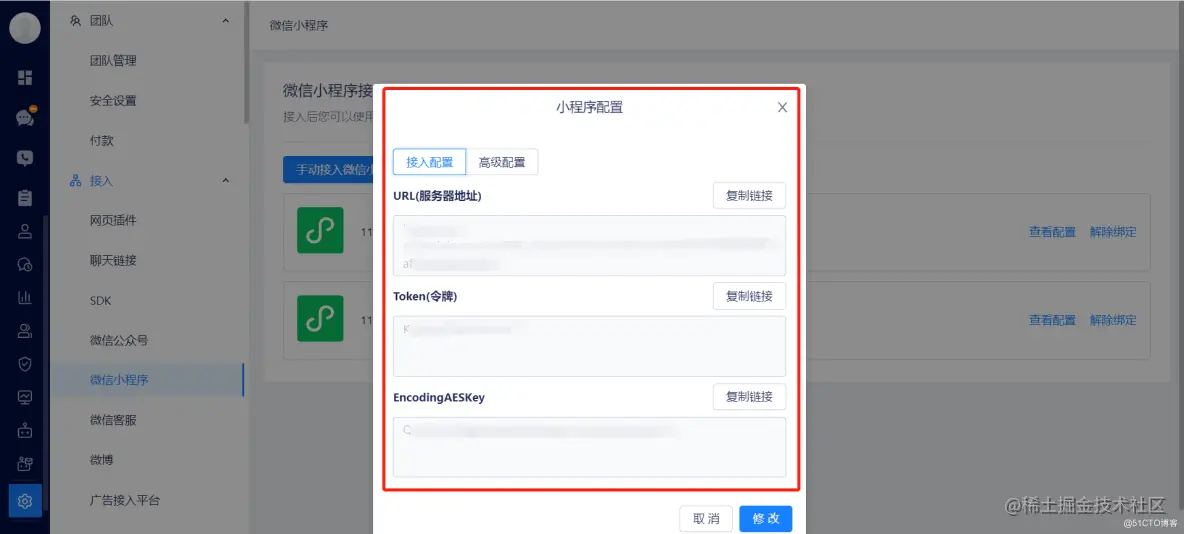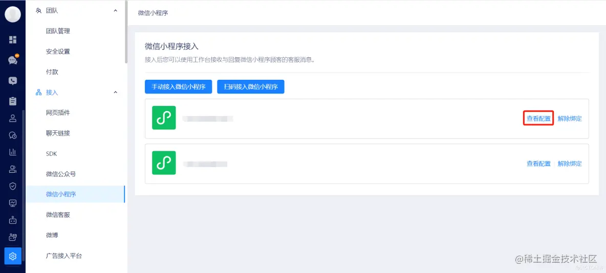 接入完成后,点击右侧的「查看配置」按钮: