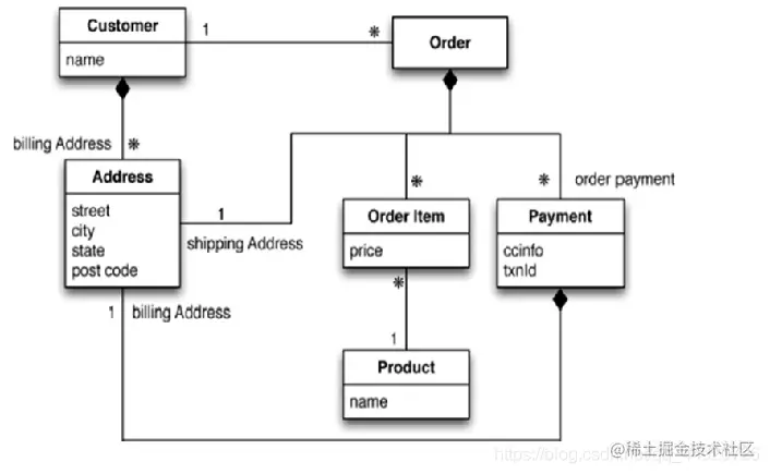 以一个电商客户、订单、订购、地址模型来对比下关系型数据库和非关系型数据库