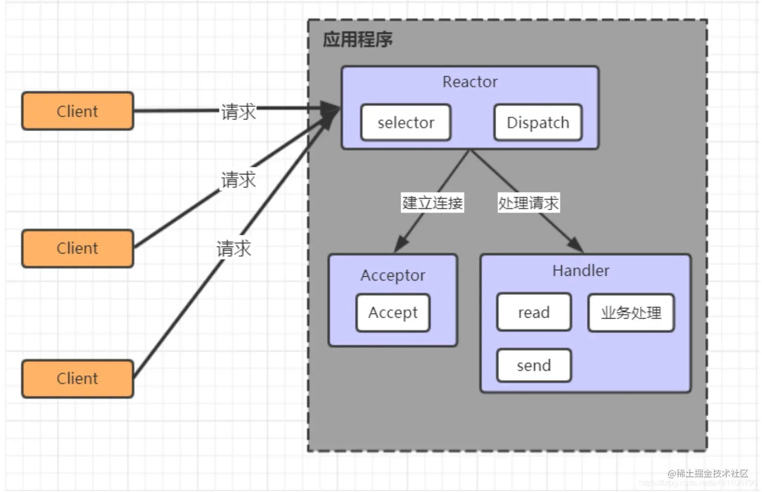 是建立连接请求事件,则由 Acceptor 通过 Accept 处理连接请求,然后创建一个 Handler 对